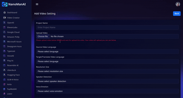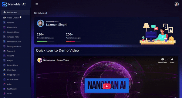 Nanoman AI makes it possible to translate and dub videos into hundreds of languages in minutes.